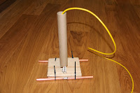 с помощью пустотелых пластмассовых корпусов шариковых ручек и стяжек на деревянном основании. |